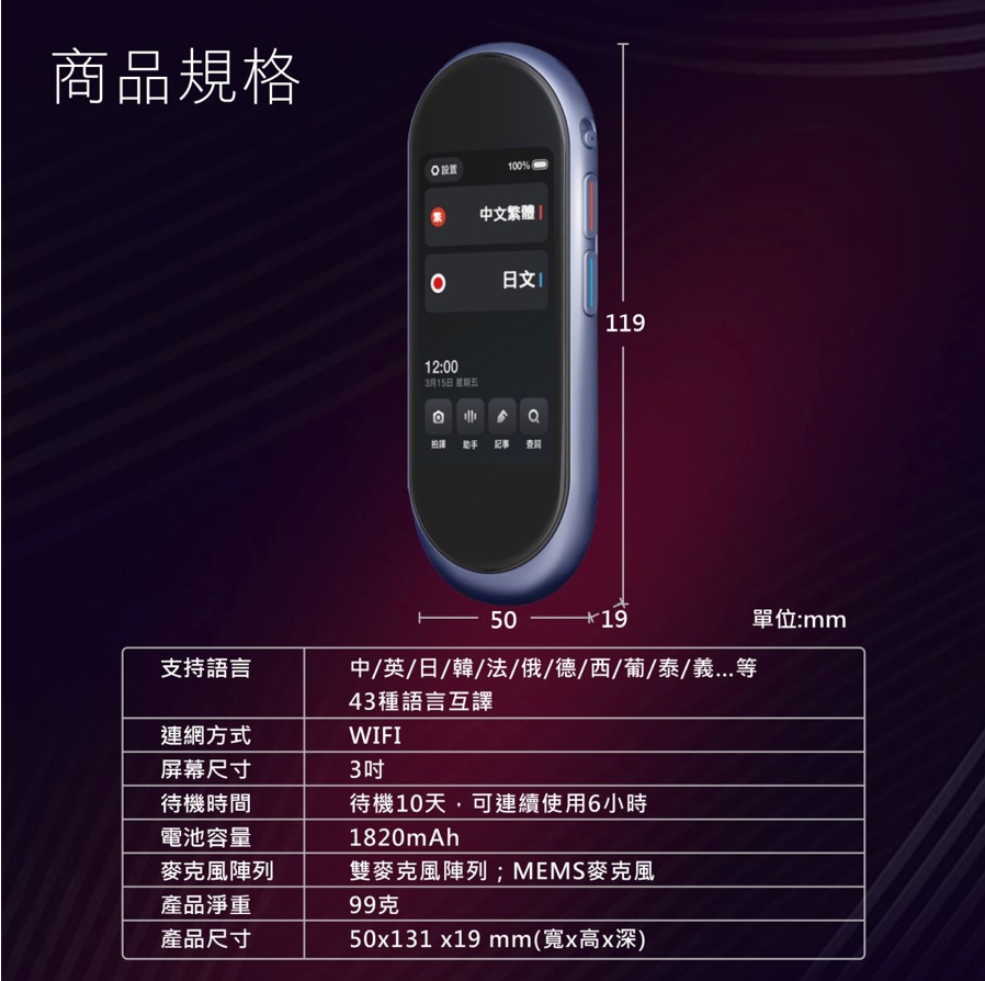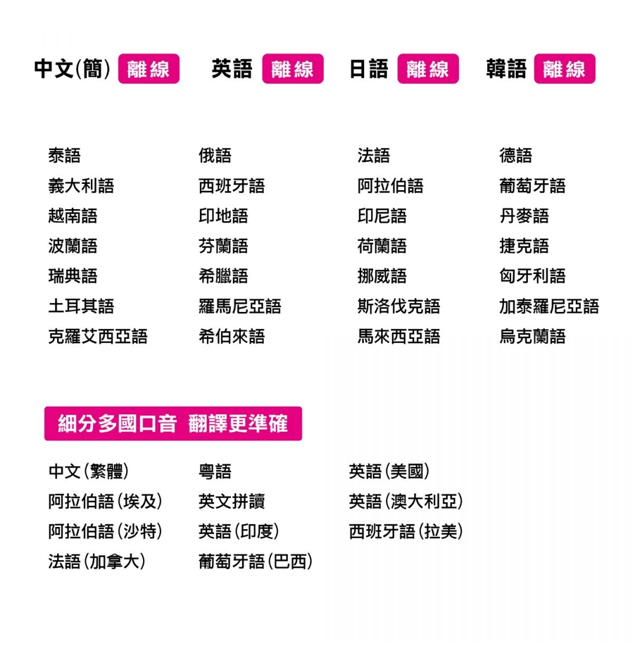 ◆可翻譯43種世界主流語言,走遍超過190國家地區